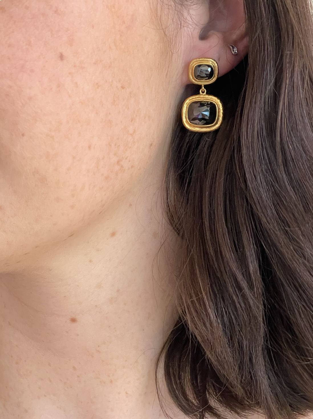 Image 1 of 2 Image 2 of 2 Black Diamond Earrings $0.00 Please contact us KGE-07013.34 grams of 24k gold and 4 black diamonds1 1/16” long by 5/8” wide Please contact us Added! KGE-07013.34 grams of 24k gold and 4 black diamonds1 1/16” long by 5/8” wide