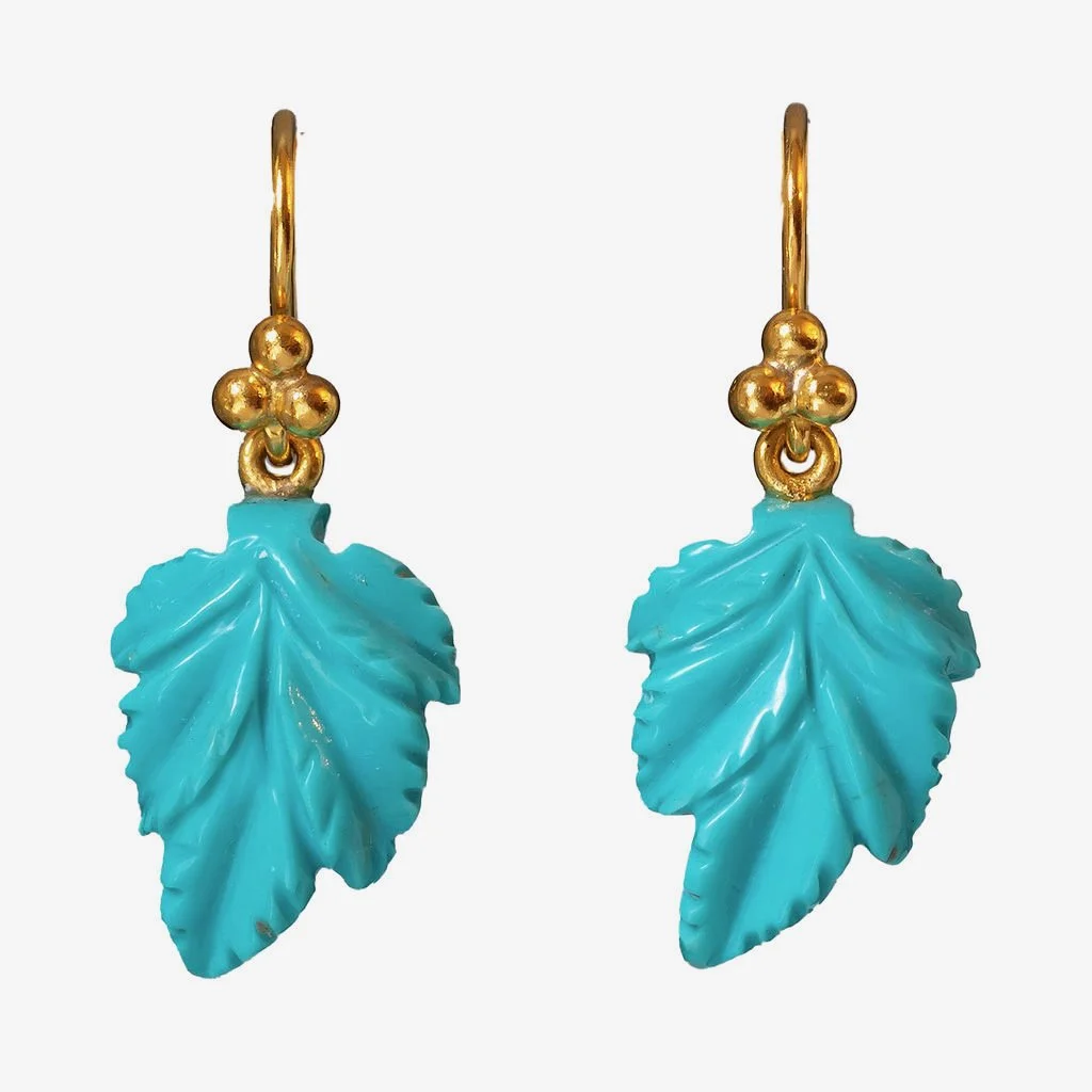 Image 1 of 3 Image 2 of 3 Image 3 of 3 Carved Turquoise Leaf Earrings $0.00 Please contact us KGE-077turquoise and 24k gold5/8” long by 1/2” wide and add 1/2” for french wire Please contact us Added! KGE-077turquoise and 24k gold5/8” long by 1/2” wide and add 1/2” for french wire