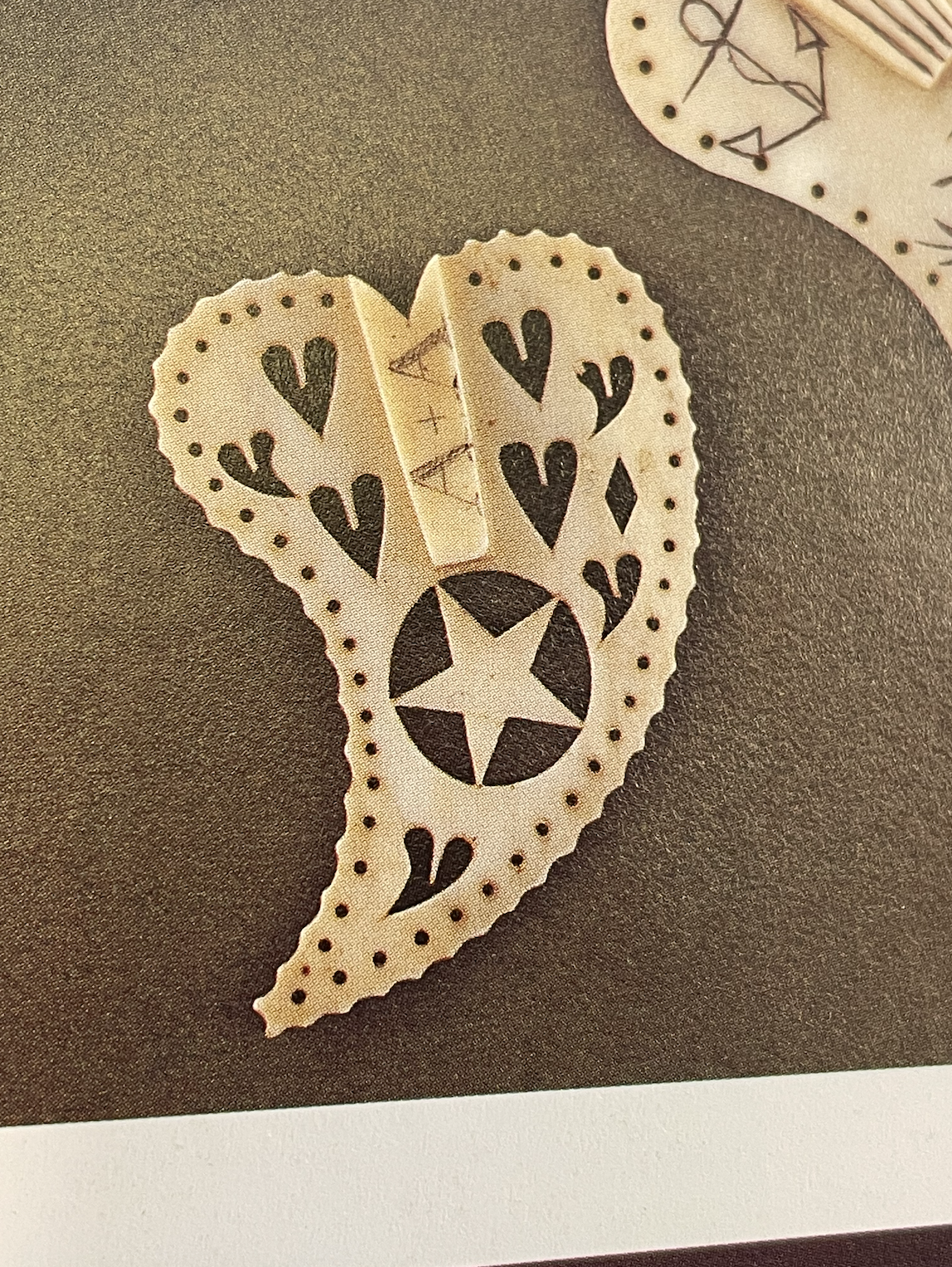 I love the whimsy of this piece! This heart pendant was inspired by the 19th Century needle holders from the collections of both the Nantucket Whaling Museum and the New Bedford Whaling Museum. The original needle holders were made of whale ivory and were popular things for sailors to make on shipboard for their wives and sweethearts during their idle hours at sea. Women secured these needle holders to their smocks or aprons by sewing them on using the tiny holes along the edges. That way they always had a needle at hand when they needed one. I decided to fill the little holes on this version with small diamonds!