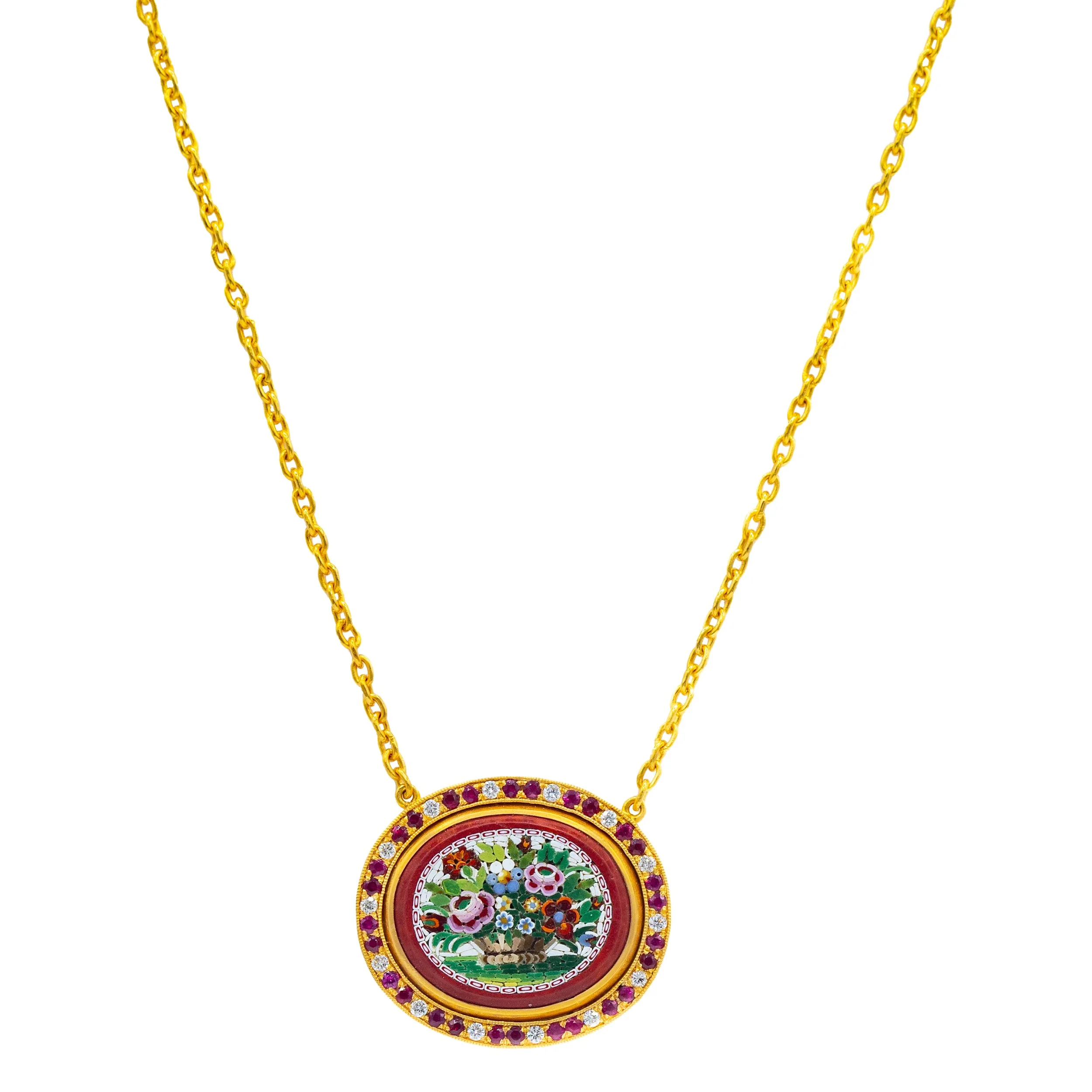 Made in Italy of tiny glass tesserae, these pieces were largely made for the Grand Tour trade. They were meant to be a high quality remembrance of a sojourn through Italy. Starting in the 1840s, some of the best quality mosaics came from the Vatican workshops. Scenes range from ancient ruins to flowers, animals, and classical symbols. They also evoke Byzantine mosaics dating from 500 AD in Italy and elsewhere.